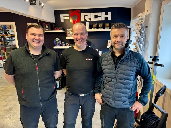Stian Fallet (t.v.) trives svært godt på jobb sammen med Jørn Inge Bunes og Trond Holtet. For mange er bedriften best kjent under navnet Vanline, men byttet navn til Förch i 2023.