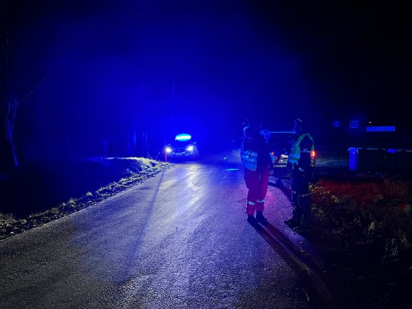 – De fraktes med ambulanse til sykehuset for videre undersøkelser. Bilen skal ha truffet en stein da den kjørte ned skråningen, oppdaterer politiet.