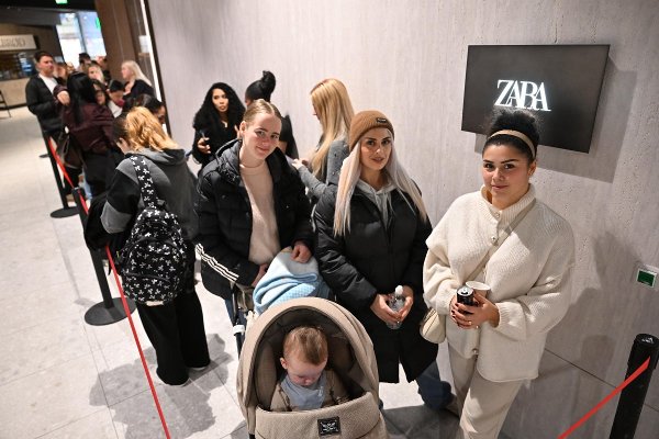 Lang kø før åpning av Zara på Lagunen Storsenter.