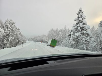 Tirsdag formiddag melder Vegtrafikksentralen om trøbbel for et vogntog. Vogntoget står i grøfta, opplyser Vegtrafikksentralen til GD.