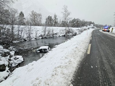 Bil havnet i vannet – vanskelige kjøreforhold