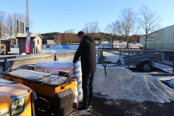 MILDERE VÆR I VENTE: Det har vært kaldt de siste dagene, og EIK har saltet banen i flere omganger. Men fra fredag ettermiddag skal temperaturene opp på plussiden igjen, som betyr at det ikke skal bli store problemer med å bruke banen på lørdag.