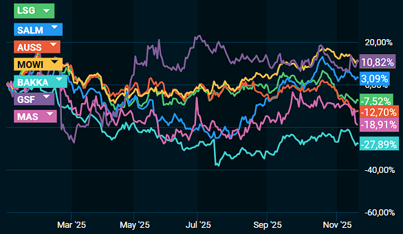 “Etter oppdateringen og rapporteringen etter tredje kvartal ser vi fortsatt på SALM og MOWI som de beste sektorvalg å spille på et sterkere laksemarked i 2026,” skriver Lie videre.