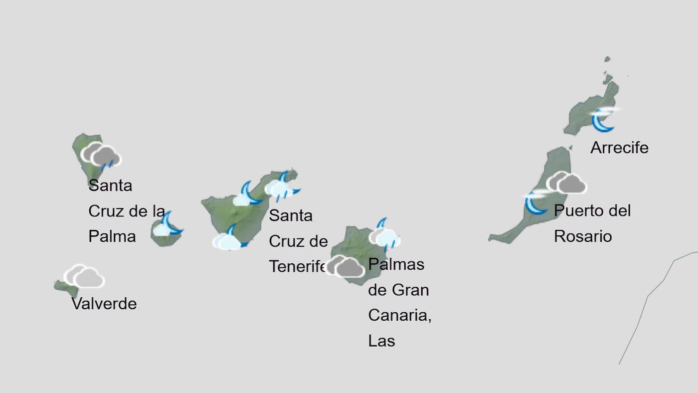 Værmeldingen viser også nedbør på Tenerife, La Gomera og El Hierro, og overskyet, men moderat til lite nedbør på Gran Canaria lørdag.