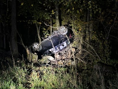Spor på stedet viser at bilen har kommet kjørende på gangveien fra flytårnet og under Forneburingen. Der har bilføreren sneiet to store steinblokker, før det har gått galt på den glatte gangveien – og endt i vannet.