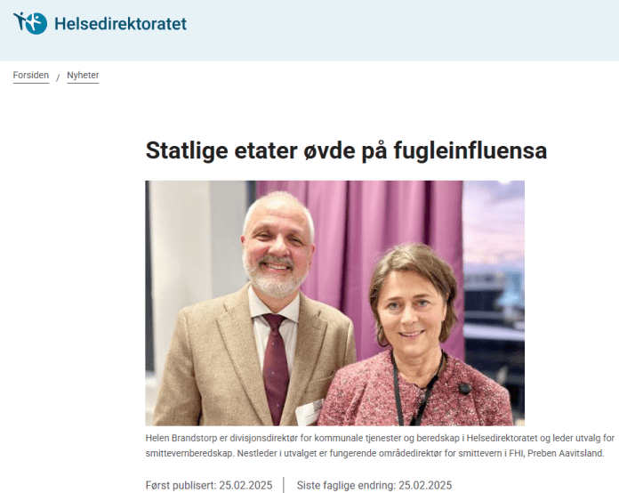 Man kan legge til i ligningen at Helsedirektoratet var blant de viktigste organene for den åpenbart planlagte og politiske pandemien i 2020, at det har vært et durabelig stress med å få på plass WHO’s Pandemitraktat nå før 2025, og at det har vært alle mulige tegn på at neste runde skal bli fugleinfluensa, blant annet med en rekke innslag av ellevill propaganda.