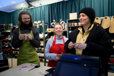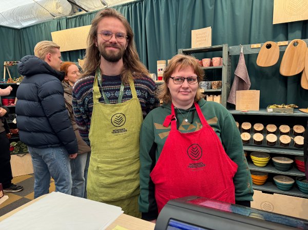 Audun Lullau og Janniche Lavik har hatt en del besøkende i boden til Nordnes Verksteder.