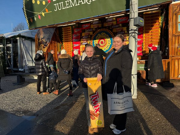 Ti år gamle Madelen var strålende fornøyd med å ha vunnet to kilo med sjokolade.