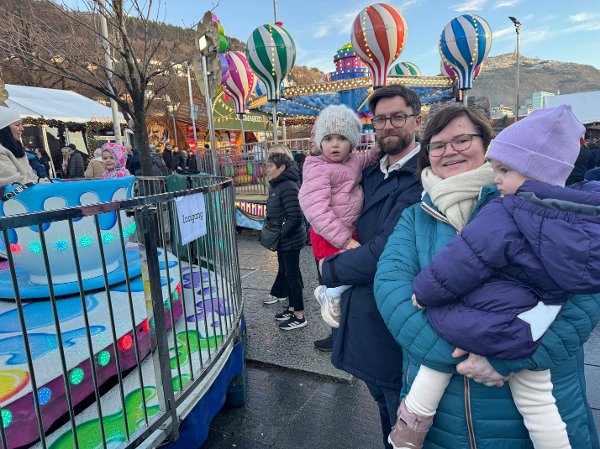 Marita Vindheim Johnsen har tatt med familien ens ærend fra Førde til Bergen for å dra på julemarkedet.