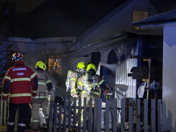 – Brannen er slukket og vi har kontroll. Akkurat nå er mannskapene i gang med å rive kledningen på uthuset, sier Marcus Aakre Julshamn ved 110-sentralen.