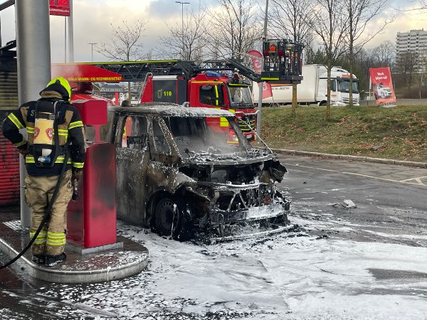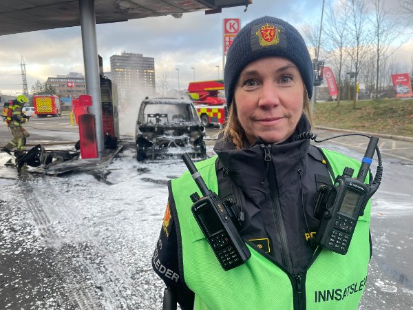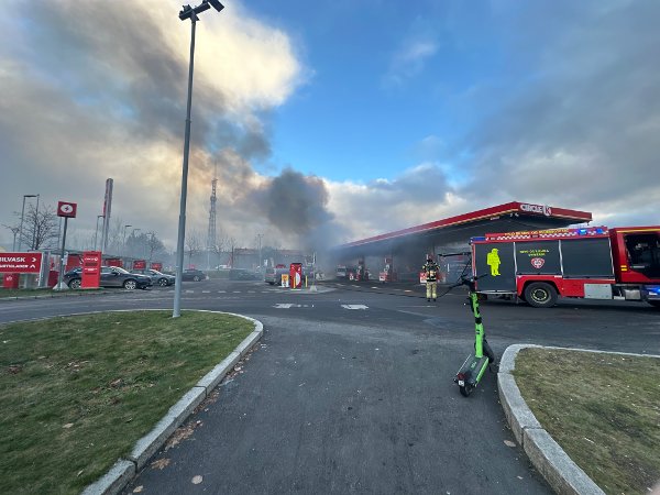 – Det ble observert høye flammer helt opp til taket på bensinstasjonen og kraftig røykutvikling.