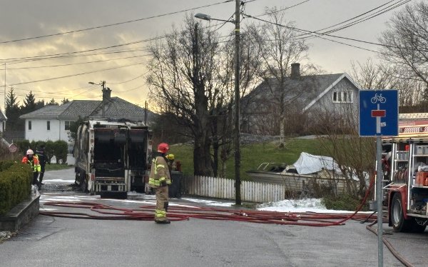 KARMØY: Klokken 10.17 rykker nødetatene ut til melding om brann i en søppelbil på Vea.