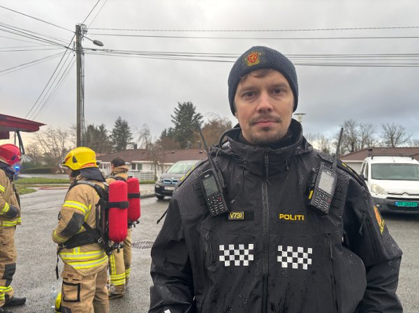 Innsatsleder Lars Kristian Lund forklarer at det første politiet gjorde da det kom til stedet, var å evakuere beboere i nærheten.