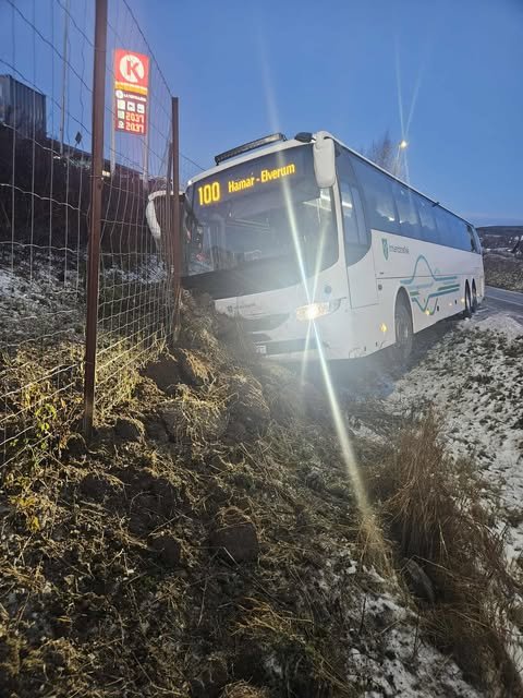 Trafikk, Ulykker | Buss kjørte av veien i Hamar: – Vanskelig føre