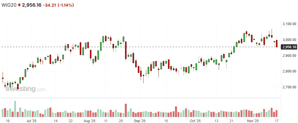 Szczyt notowań na giełdach mieliśmy pod koniec października, wtedy zaczęła się po niej rozlewać fala spadków napędzana wątpliwościami co do wycen rynkowych spółek związanych z rozwojem AI. Zaczęło się od rozczarowania wynikami Meta Platforms, swoją drogą akcje spółki Marka Zuckerberga od tamtej pory spasły już o blisko 20 proc.