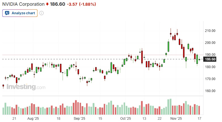 Notowania giełdowe akcji NVidia, źródło: investing.com