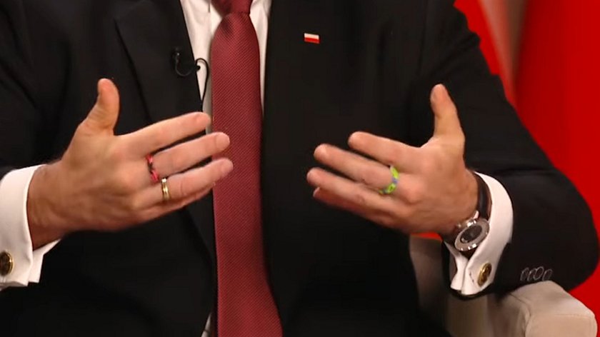 — Jeśli chodzi o kolorowe spinki, gumki, to dostałem je od swojej córki w niedzielę i obiecałem, że będę nosił, aż spadną — powiedział Nawrocki z uśmiechem na ustach. Zwrócił uwagę, że miał trzy, ale „jedna spadła podczas wczorajszego treningu”.