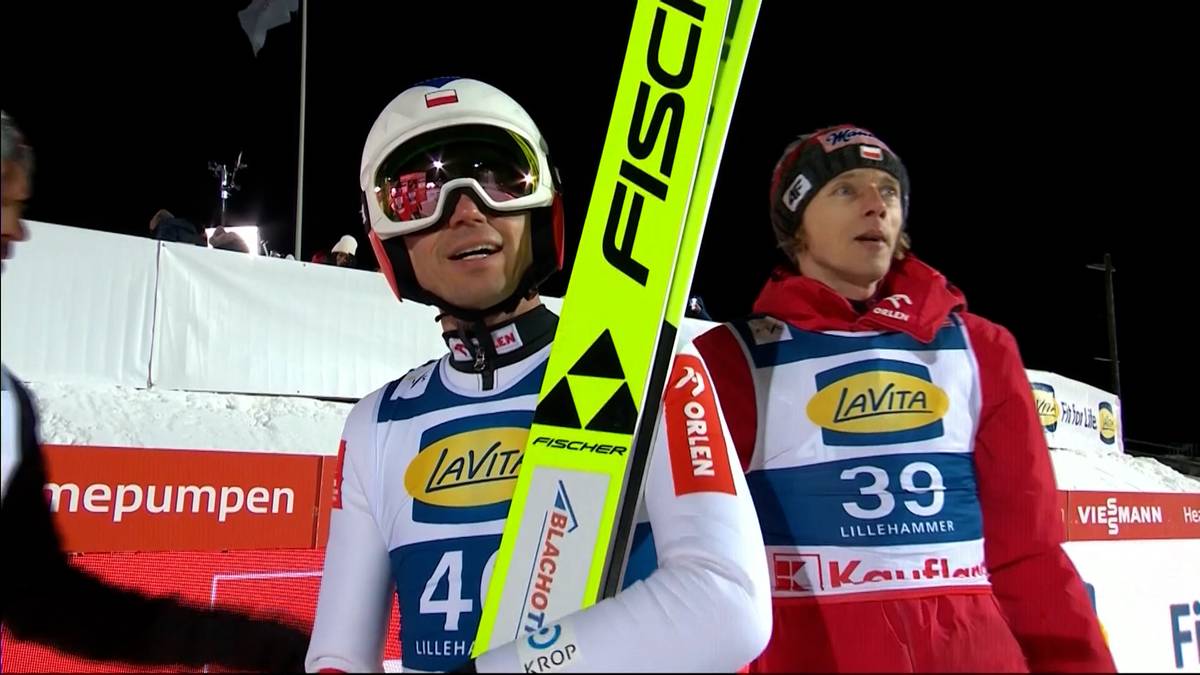 Stoch skoczył 135,5 m i 122 m, otrzymując notę 291,3 pkt. Tomasiak skokami na 137 m i 122 m wywalczył 283,2 pkt. Żyła uzyskał 131 m i 126,5 m – 283 pkt, Kubacki 126,5 m i 121,5 m – 277,1 pkt, a Wąsek 127,5 m i 119 m – 268,7 pkt. Aleksander Zniszczoł odpadł w kwalifikacjach.