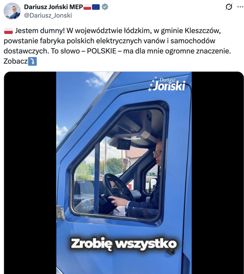 W lipcu 2025 roku Dariusz Joński, europoseł Koalicji Obywatelskiej – kierując Iwanem – zachwalał na własnym profilu zalety dostawczaka z Kleszczowa.