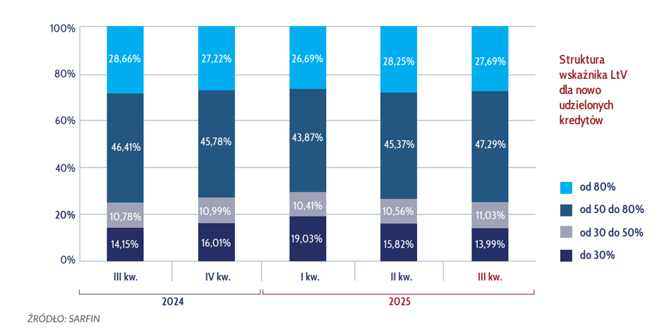 znaczące zmiany pod względem wskaźnika LTV. Udział umów z wkładem własnym