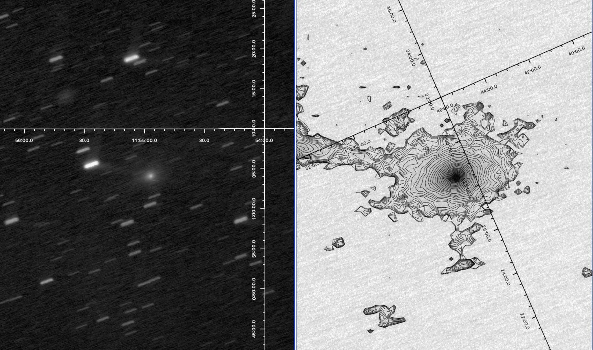 Naukowiec wyliczył, że przy obecnej odległości komety od Słońca (wynoszącej około 270 milionów kilometrów), obiekty te znajdują się około 54 000 kilometrów bliżej Słońca niż samo jądro. Dzieje się tak, ponieważ główna bryła komety jest „wypychana” od gwiazdy przez gazy (przyspieszenie niegrawitacyjne), podczas gdy hipotetyczny „martwy” rój zostaje nieco w tyle – czyli bliżej Słońca.