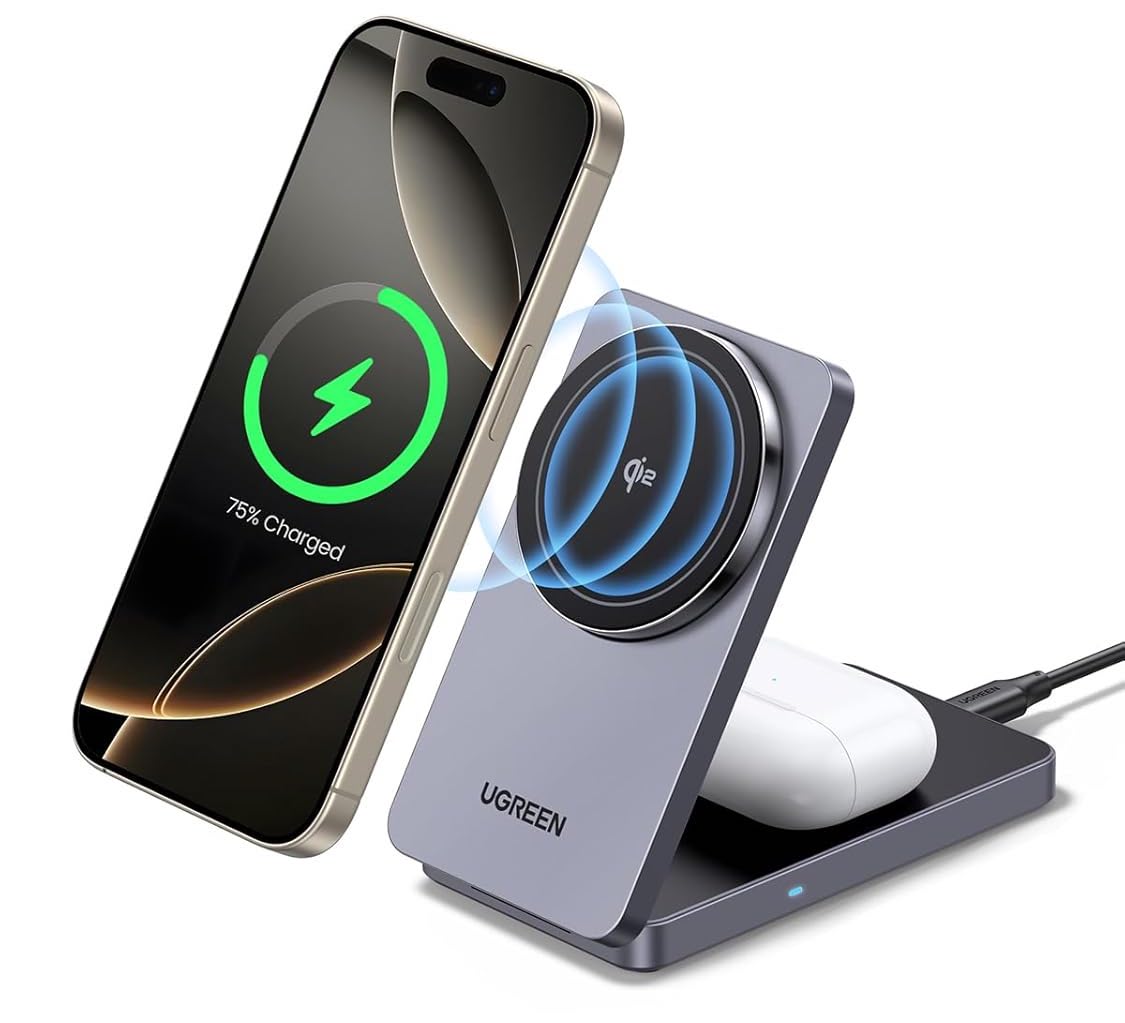 UGREEN MagFlow – magnetyczna stacja ładująca 15W z certyfikatem Qi2, MagSafe, 2 w 1, składana: 239 zł -> 135 zł
