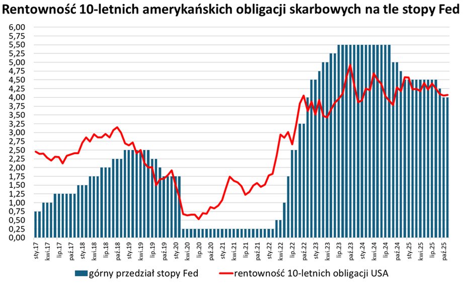 Przypomnijmy, że na ostatnich posiedzeniach FOMC (Federal Open Market Committee, organ Fed podejmujący decyzję o poziomie stóp) we wrześniu i październiku obniżył koszt pieniądza o ćwierć punktu procentowego. Wrześniowe posiedzenie było bardzo ważne, bo Fed wrócił wtedy, po prawie roku pauzy, do luzowania polityki pieniężnej.