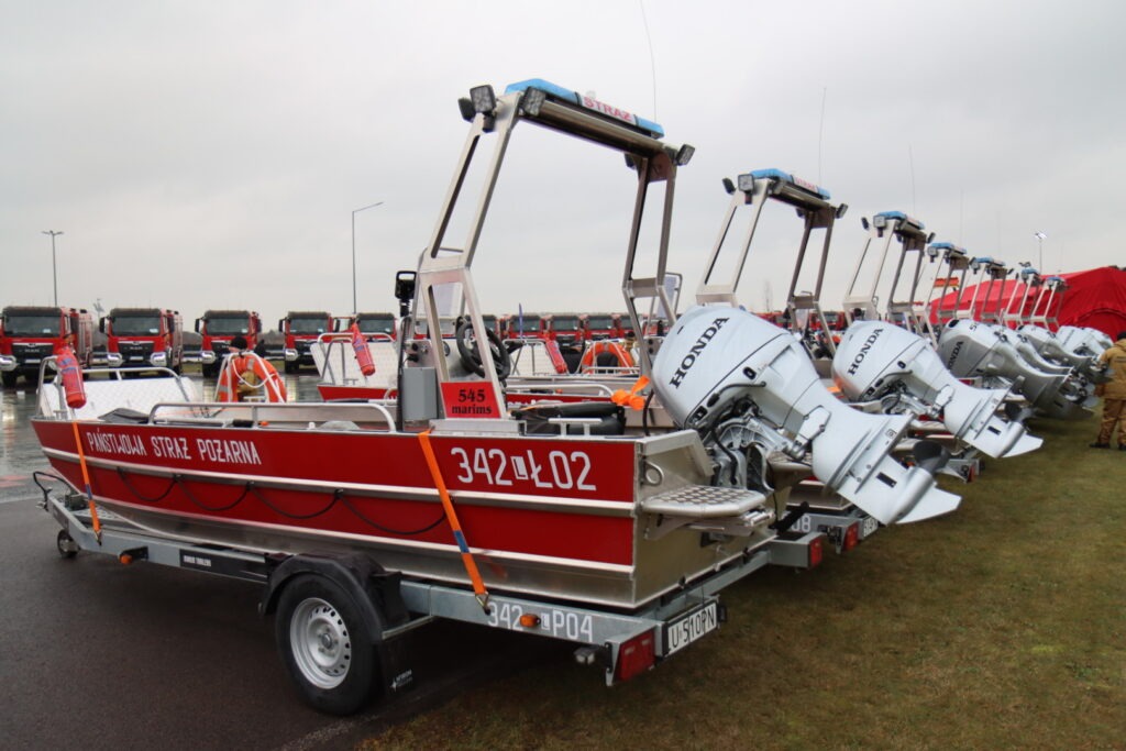 – Łódź ratownicza z funkcją gaszenia na przyczepie wraz z wyposażeniem – 4 szt. (KP PSP Puławy, KP PSP Kraśnik, KP PSP Opole Lubelskie, KP PSP Ryki) – o łącznej wartości 619 595,28zł