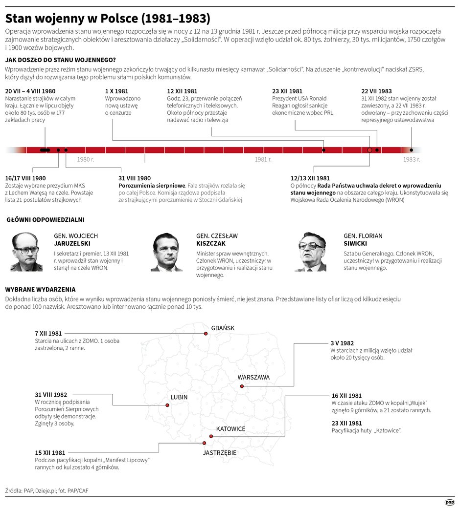 Prof. Andrzej Paczkowski: Termin był głęboko przemyślany. Po pierwsze, to była niedziela, kiedy większość zakładów ma wolne. Po drugie, przeciętnemu Polakowi katolikowi nie mieściło się w głowie, że tuż przed świętami Bożego Narodzenia władza zdecyduje się na taki krok. I po trzecie, zbliżał się 17 grudnia, rocznica masakry na Wybrzeżu w 1970 r., a Solidarność zapowiedziała wielką demonstrację w Gdańsku.