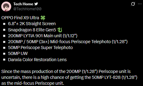 Specyfikacja Oppo Find X9 Ultra / fot. Tech Home