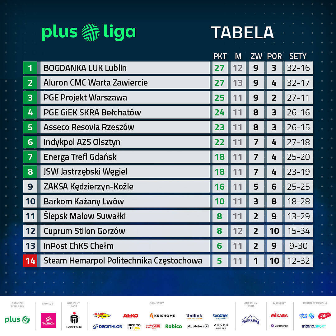 Tabela PlusLigi po 11. kolejkach