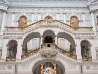 Zdjęcia wnętrz auli Politechniki Warszawskiej.