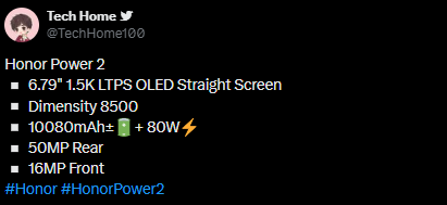 Specyfikacja Honora Power 2 / fot. Tech Home