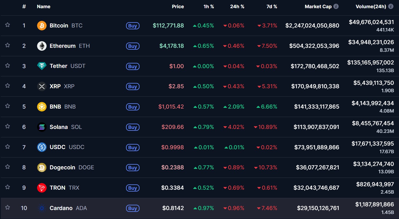 Tymczasem altcoiny wydają się podążać za BTC. W chwili pisania tego tekstu projekty z TOP 10 notują niewielką zmienność w zakresie dobowym.