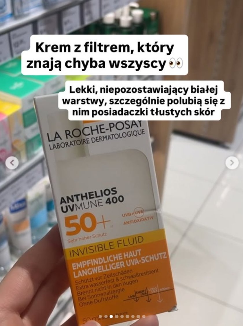 „Lekki, niebielący filtr, który świetnie sprawdza się przy skórach tłustych i trądzikowych. Formuła szybko się wchłania i nie pozostawia tłustej warstwy, dzięki czemu jest bardzo komfortowa w codziennej ochronie. Idealny, jeśli zależy ci na wysokim SPF w lekkiej konsystencji” — wyjaśniła ekspertka.