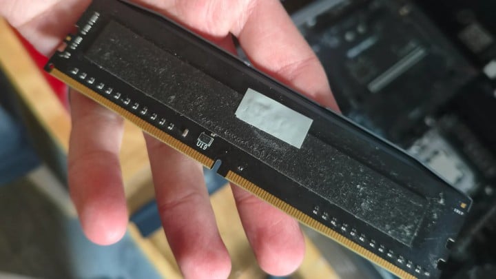 Wtedy zorientował się, że coś jest nie tak. Okazało się, że ktoś wyjął właściwą pamięć DDR5 i podmienił ją na DDR4, która ma inne wcięcie w złączu, uniemożliwiające montaż.