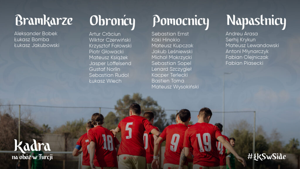W Turcji trener Grzegorz Szoka będzie miał do dyspozycji 3 bramkarzy i 25 zawodników z pola, a wśród nich pięciu młodych piłkarzy z Akademii ŁKS (Wiktor Czerwiński, Jakub Leśniewski, Sebastian Sopel, Lenard Szczygieł i Fabian Olejniczak).