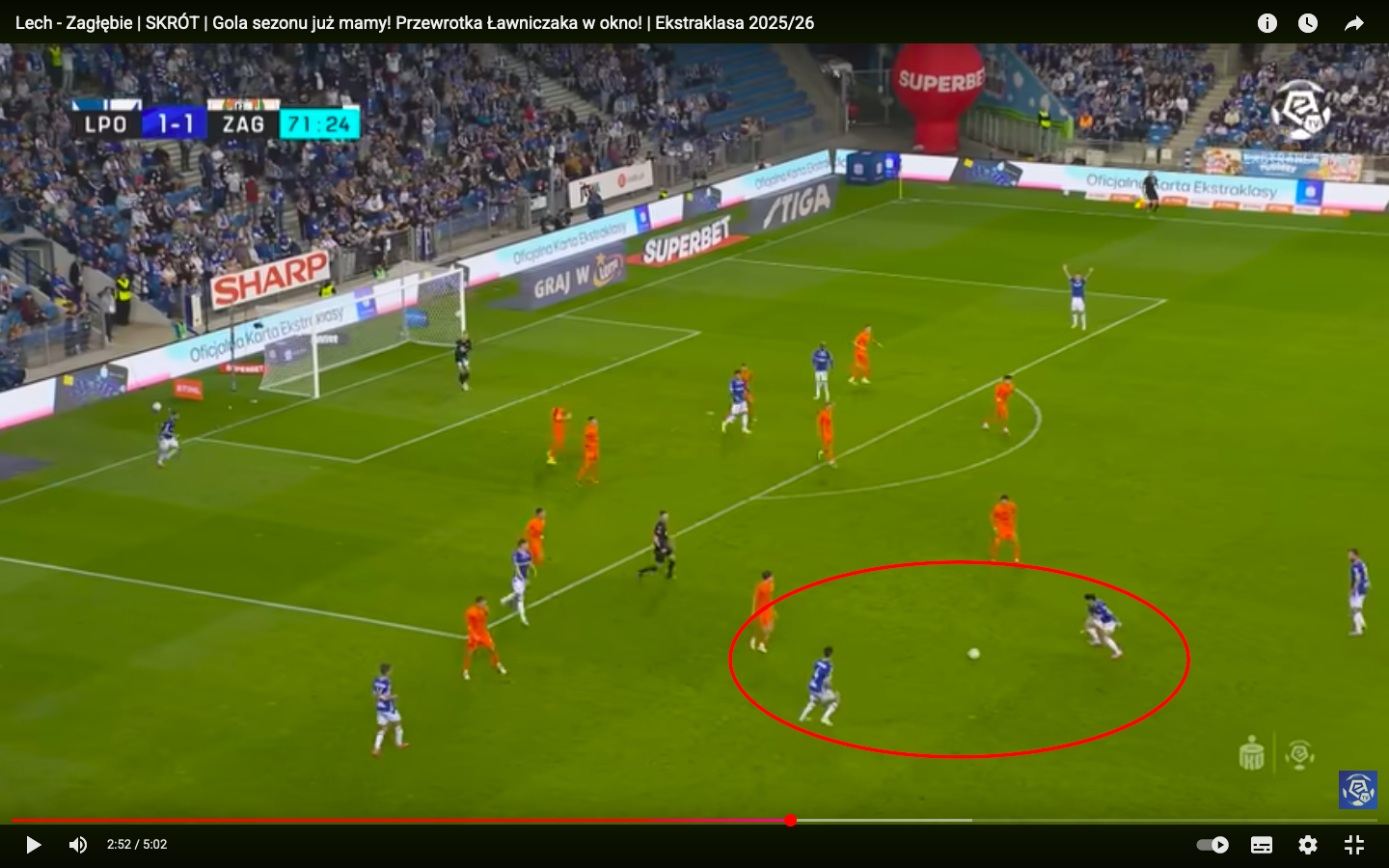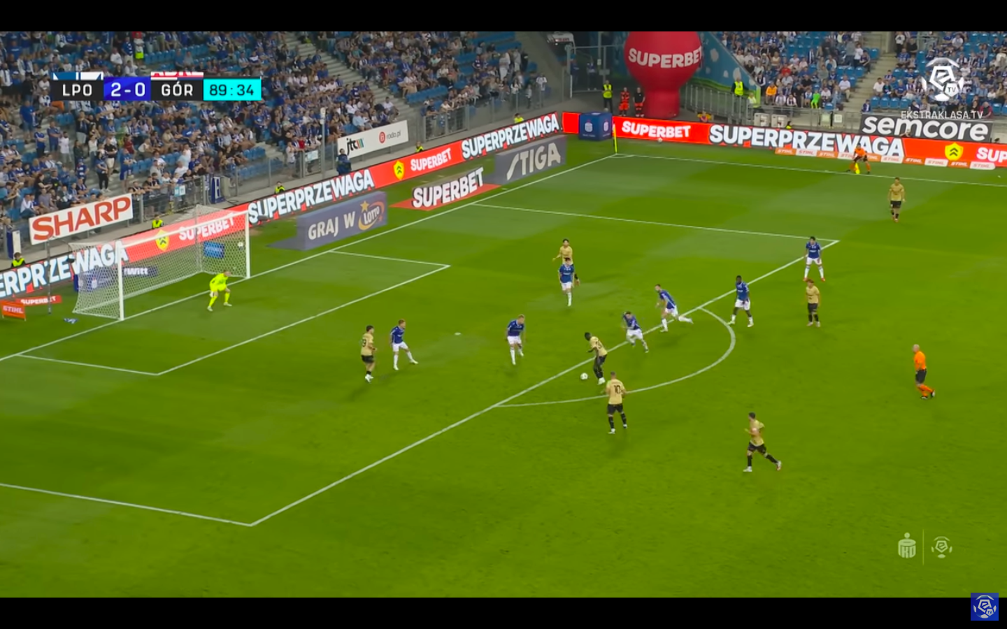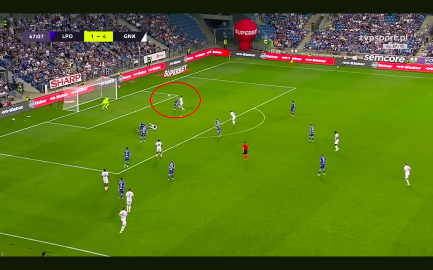 - Gol na 1:3: Michał Gurgul i Antonio Milić przegrywają starcie dwóch na dwóch w bocznym sektorze boiska. Wyjście stopera ze strefy stopera skutkuje powstaniem autostrady do bramki Mrozka. Po drodze jeszcze Skrzypczak – rozpaczliwie interweniując – samemu wbija sobie piłkę do siatki.