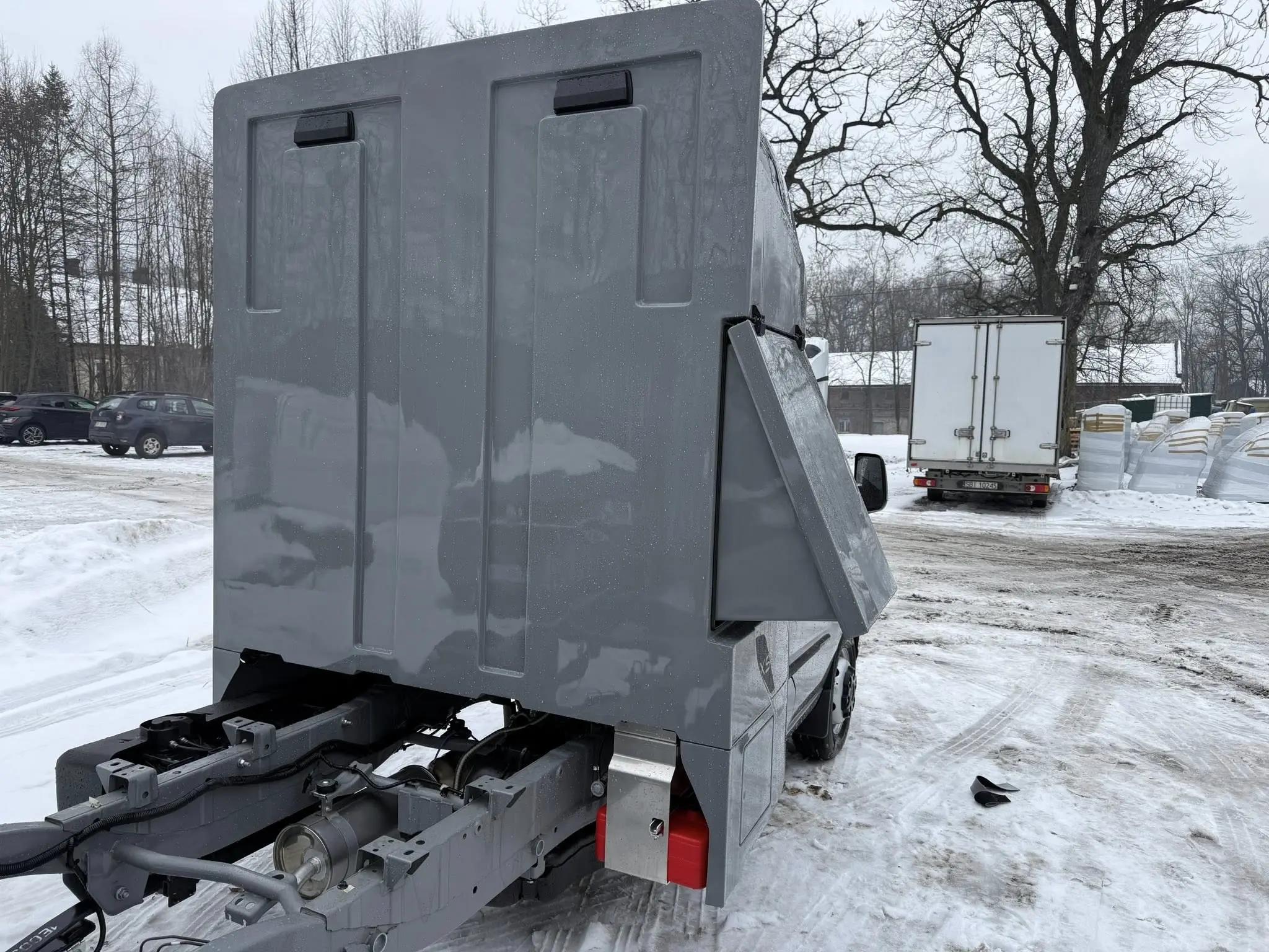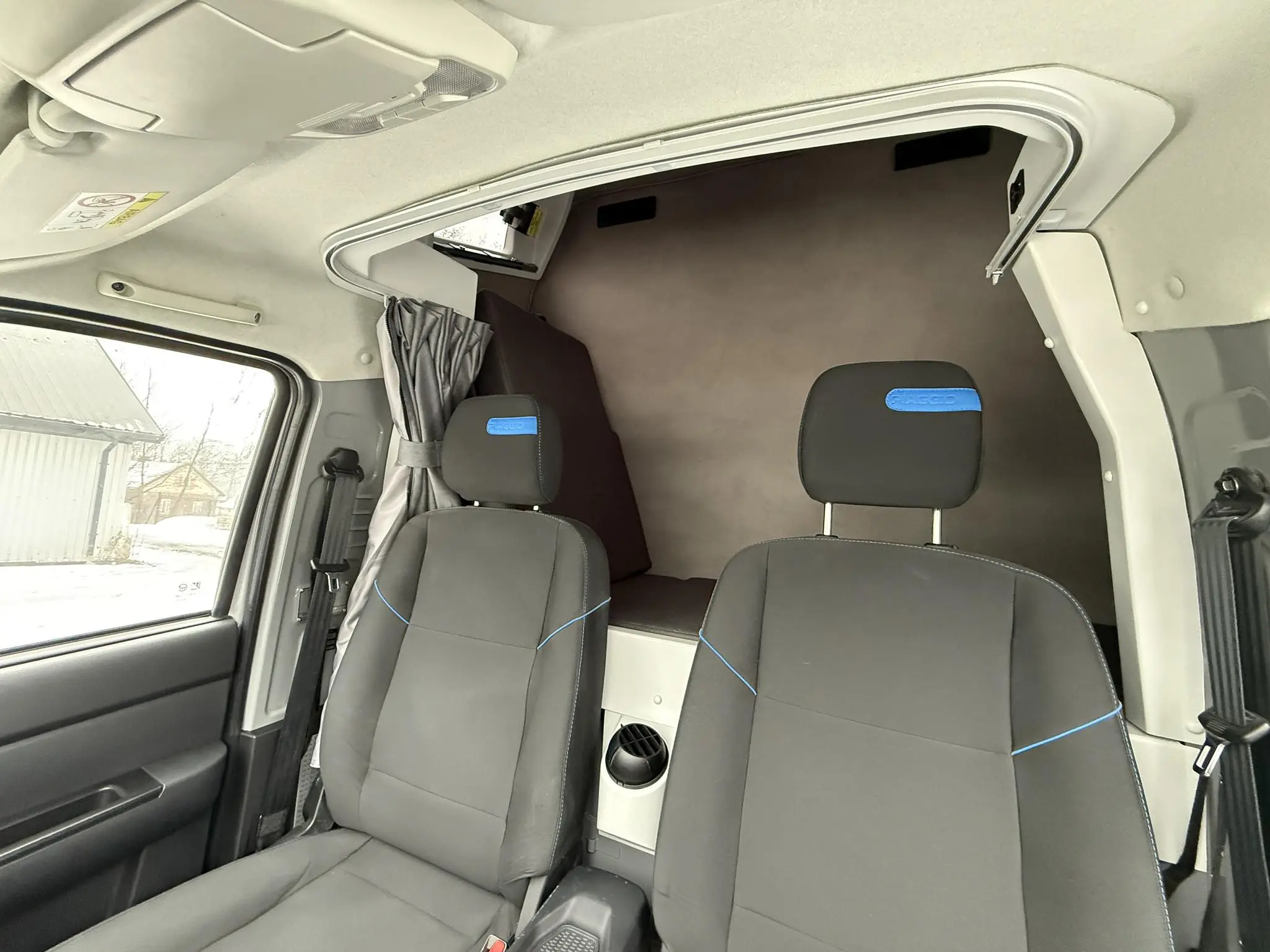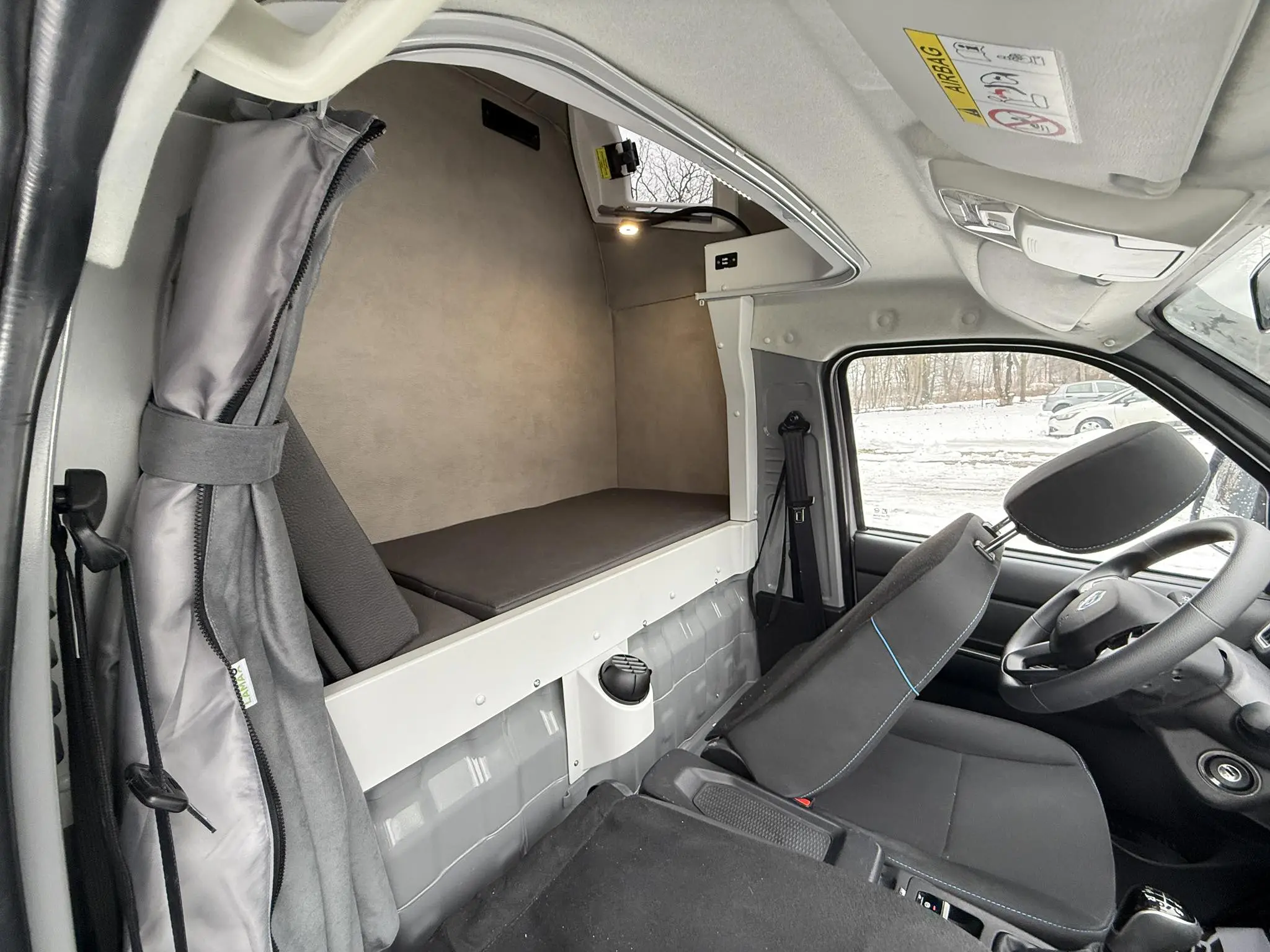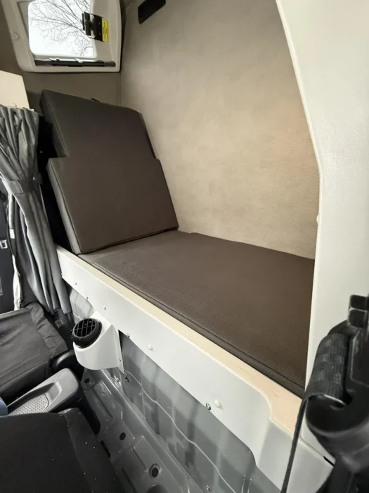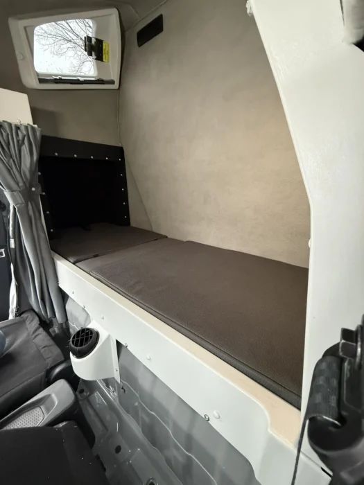 Nowa kabina nie ma charakteru dachowego, lecz montuje się ją za fotelami, zmniejszając potencjalną przestrzeń ładunkową z pięciu do czterech europalet. Na zdjęciach wyraźnie też widać, że jest to nadwozie znacznie szersze od fabrycznego, choć to nadal nie wystarczyło, by zastosować pełnowymiarowe miejsce do spania. Dlatego firma Lamax postanowiła stworzyć system poszerzania kabiny na prawy bok, z którego kierowca będzie mógł korzystać na postoju. Zastosowanie tego systemu powiększa materac do 197 centymetrów długości i 64 centymetrów szerokości, a więc pozwoli się wyprostować znacznej części kierowców. Ponadto umieszczenie sypialni z tyłu też możliwość wygospodarowania sporych schowków, które znajdują się pod materacem, w dolnej części kabin.