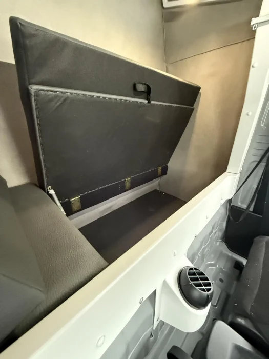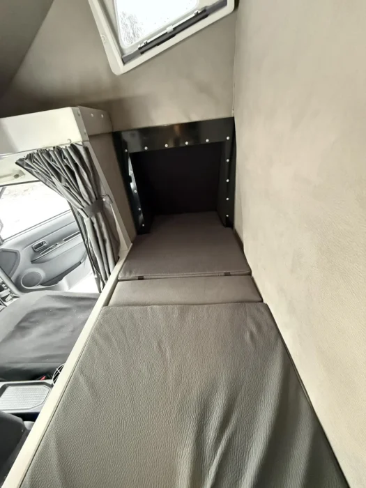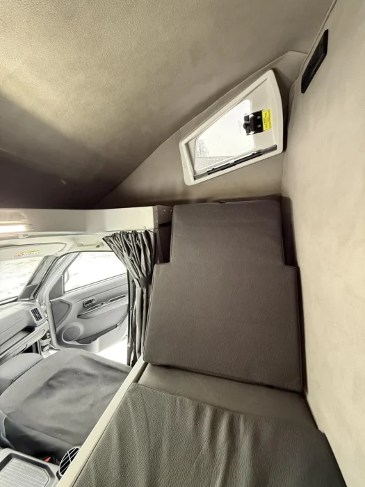 W listopadowym artykule pokazywałem już pierwszy egzemplarz takiego Piaggio z zabudową na pięć europalet oraz dachową kabiną sypialną, czyli tak zwanym „kurnikiem” (zapraszam tutaj: 2,49-tonowe Piaggio z „kurnikiem” już na drogach – jakie znajdziemy tu parametry?). Wspominałem wówczas, że z uwagi na bardzo wąską konstrukcję pojazdu trzeba było zamontować bardzo małe łóżko, z materacem długim na zaledwie 1,72 metra. I właśnie ten problem ma rozwiązać Lamax Travel Cab XS, za sprawą pewnego bardzo nietypowego rozwiązania, doskonale widocznego na poniższych zdjęciach.