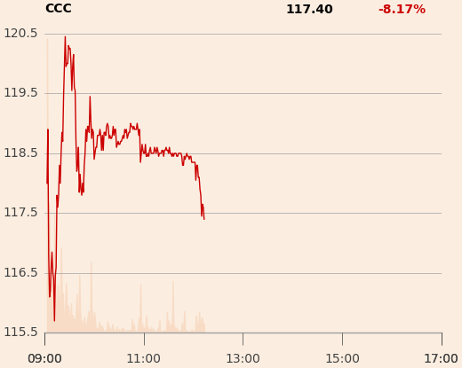 W czwartek o godz. 10 kurs akcji CCC spadał o ponad 7 proc., do 118,6 zł.