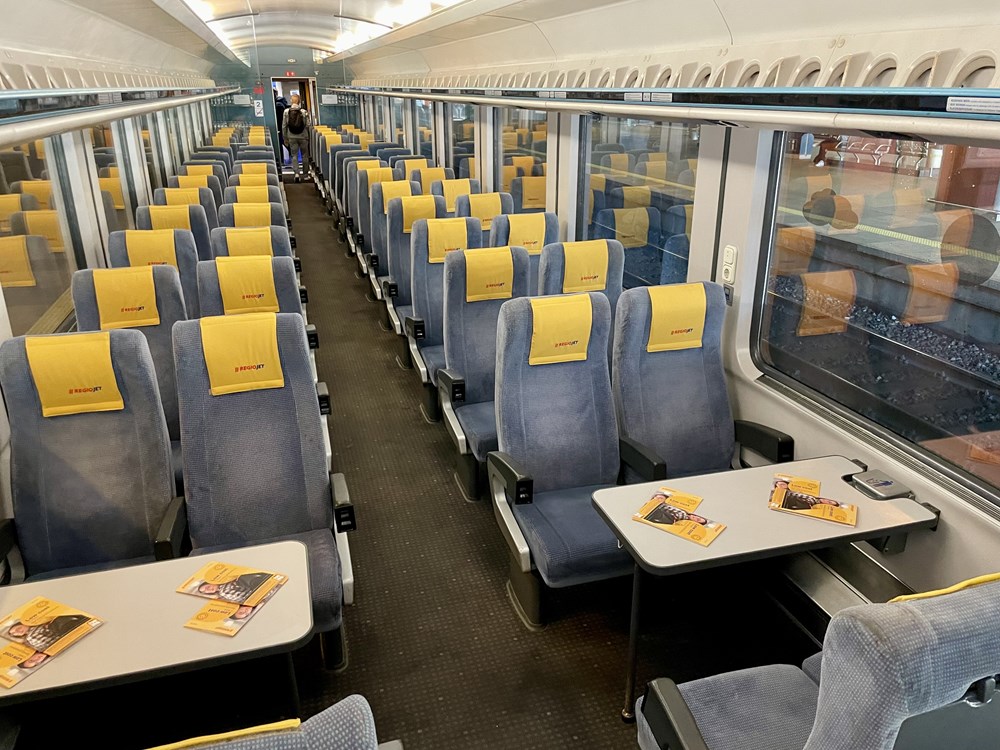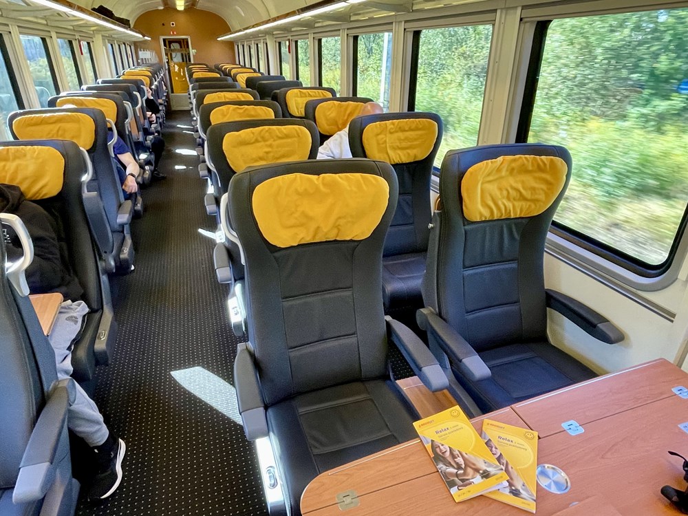 W klasie Standard mamy fotele wykończone materiałem i przedziały dla sześciu osób – podobnie jak w innych klasach również one są bardzo wygodne, a w przedziałach jest dużo miejsca na nogi.