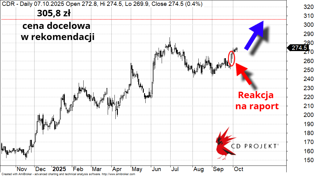 “Spodziewaliśmy się, że w 2027 r., czyli w roku premiery W4, zysk netto wyniesie 2,2 mld PLN, a średni zysk netto w latach 2027-31 wyniesie 2,0 mld PLN. W oparciu o tę prognozę, CDR jest wyceniane przy wskaźniku P/E na poziomie 13x, w porównaniu do >20x w przypadku Take-Two w latach 2027-28e, tj. w roku premiery GTAVI. Taka wycena w połączeniu z potencjalną możliwością ekspansji W3 skłoniła nas do podtrzymania rekomendacji Kupuj i podwyższenia ceny docelowej do 305,8 PLN/akcję” – podsumowano w raporcie.