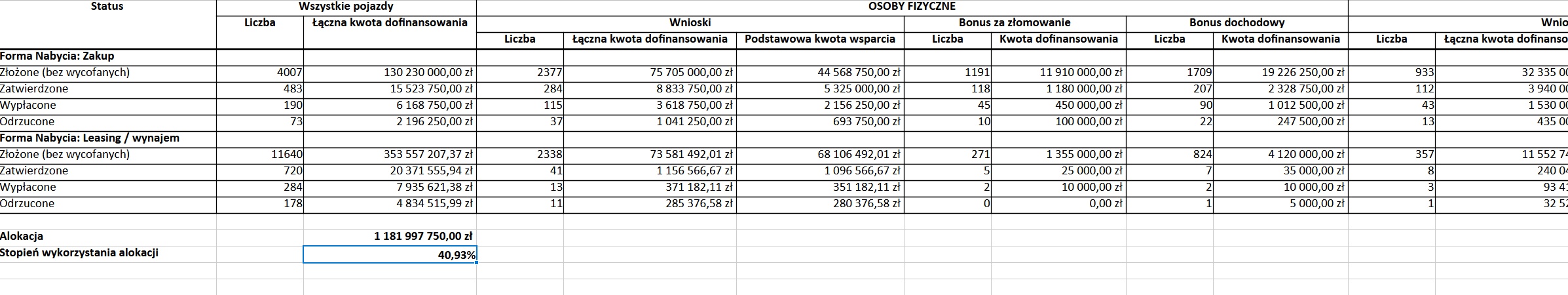 Osoby fizyczne i jednoosobowe działalności gospodarcze zbyt chętnie składały wnioski o dopłaty NaszEauto, więc trzeba było dać im do zrozumienia, że nie są mile widziane. Zgodnie z najnowszymi danymi na 3 października na 15 647 złożonych wszystkich wniosków zatwierdzono 1 203 (7,7 proc.) a przelewy wykonano do 474 wnioskujących (całe 3 proc.!). Widać pewne przyspieszenie, we wrześniu zaakceptowano aż 127 przelewów, co daje 5,8 przelewu na każdy dzień roboczy (poprzednie statystyki TUTAJ).