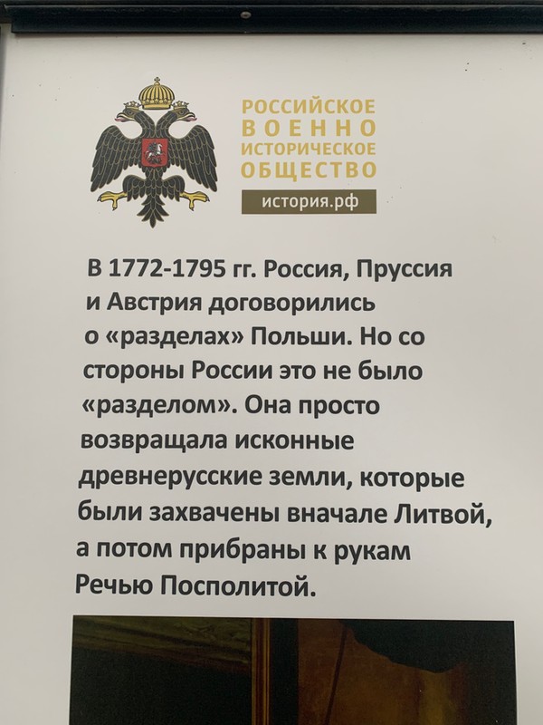Rozbiory Polski w XVIII w. według autorów wystawy wcale nie są rozbiorami. Uważają oni, że Imperium Rosyjskie po prostu odzyskało swoje terytoria. Znów mam skojarzenie ze współczesną kremlowską propagandą.