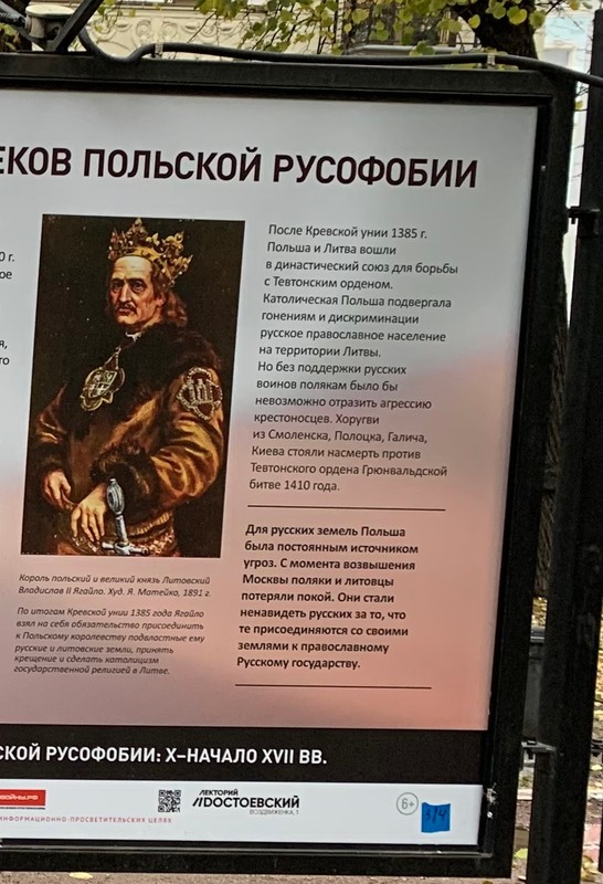 Dziewczynka w czasie naszej krótkiej wymiany uderzała patykiem w portret króla, który pokonał Krzyżaków. Matka wzięła ją za rękę i odeszły. Dziewczynka jeszcze nie wie nic o bitwie pod Grunwaldem, ale już ma wyprany mózg… Matka również nie zna historii Polski, skoro twierdzi, że Władysław II Jagiełło (Litwin) był Polakiem. Kobieta nie ma jednak wątpliwości, że Polska jest źródłem zagrożenia dla Rosji.