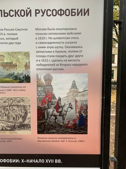 Zrobiłam jeszcze kilka zdjęć i odeszłam. Jestem pewna, że propaganda, której przykładem jest ta wystawa, do niczego dobrego nie doprowadzi. Prokremlowskie media stopniowo wzbudzają w Rosjanach nienawiść wobec Polski. Kłamstwa o niej, które codziennie widzę w rosyjskich mediach, są bolesne. Niestety większość Rosjan nie ma krytycznego podejścia do informacji i ufa mitom, takim jak te, które przedstawia wystawa „10 wieków polskiej rusofobii”.