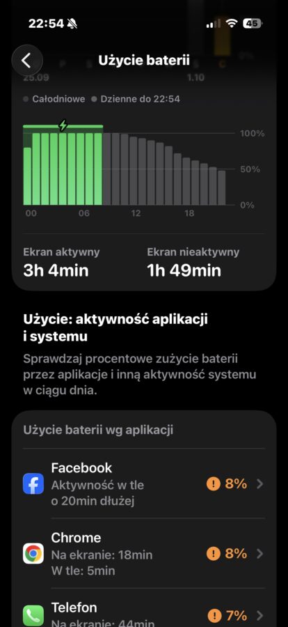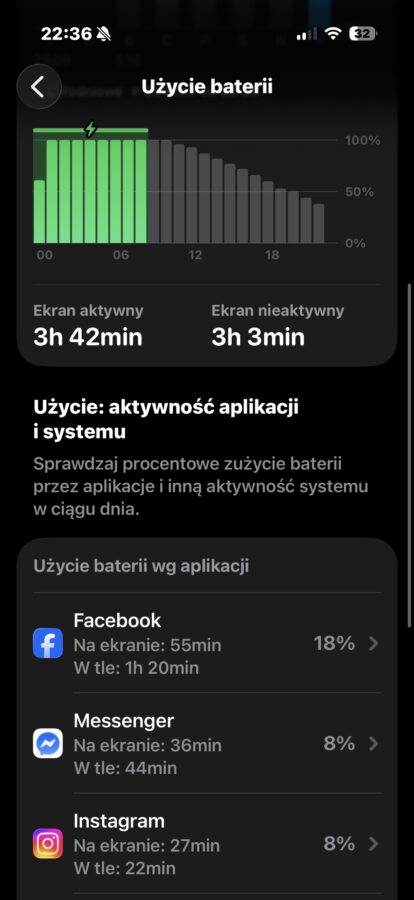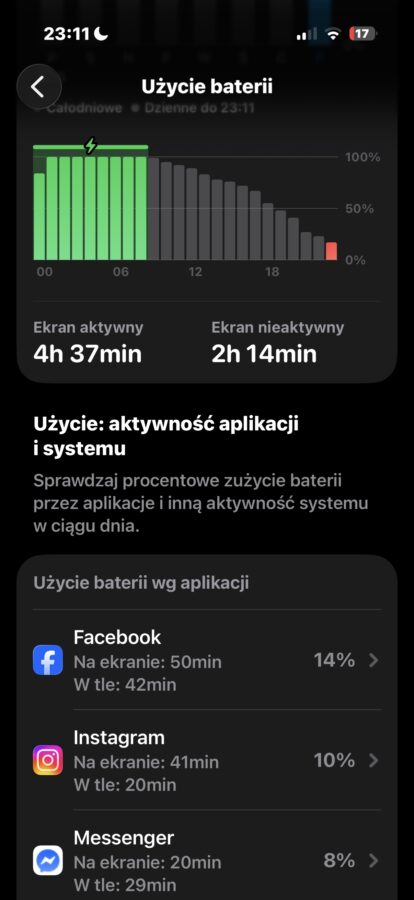 Gdybym miała jednym słowem podsumować baterię iPhone’a 17, powiedziałabym: wystarczająca. Gdybym miała to jednak rozwinąć, dodałabym: … ale nie dla każdego i nie zawsze.