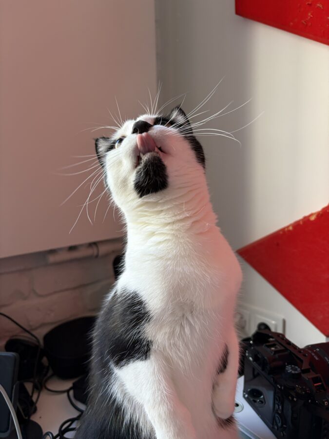 Na poniższym przykładzie jest to bardzo fajnie widoczne, choć w mniejszym stopniu niż normalnie (uwierzcie mi, to potrafi być dużo bardziej irytujące) – zwróćcie uwagę na wibrysy po lewej stronie (po lewej patrząc na wideo) pyszczka Zośki.