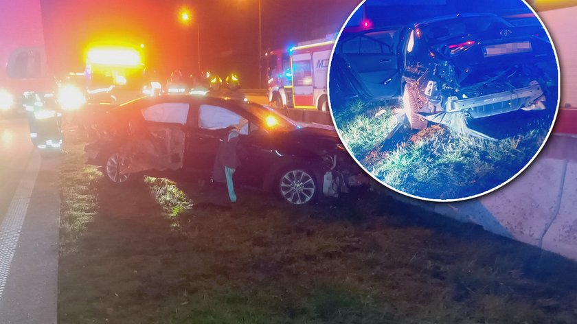 Do wypadku doszło ok. godz. 1.20 w nocy. Toyota corolla uderzyła w bariery energochłonne na autostradzie, po czym samochód przejechał przez dwa pasy drogi i zatrzymał się na pasie zieleni po lewej stronie. Na miejscu szybko pojawiły się służby, ale całe to zdarzenie jest zagadką.